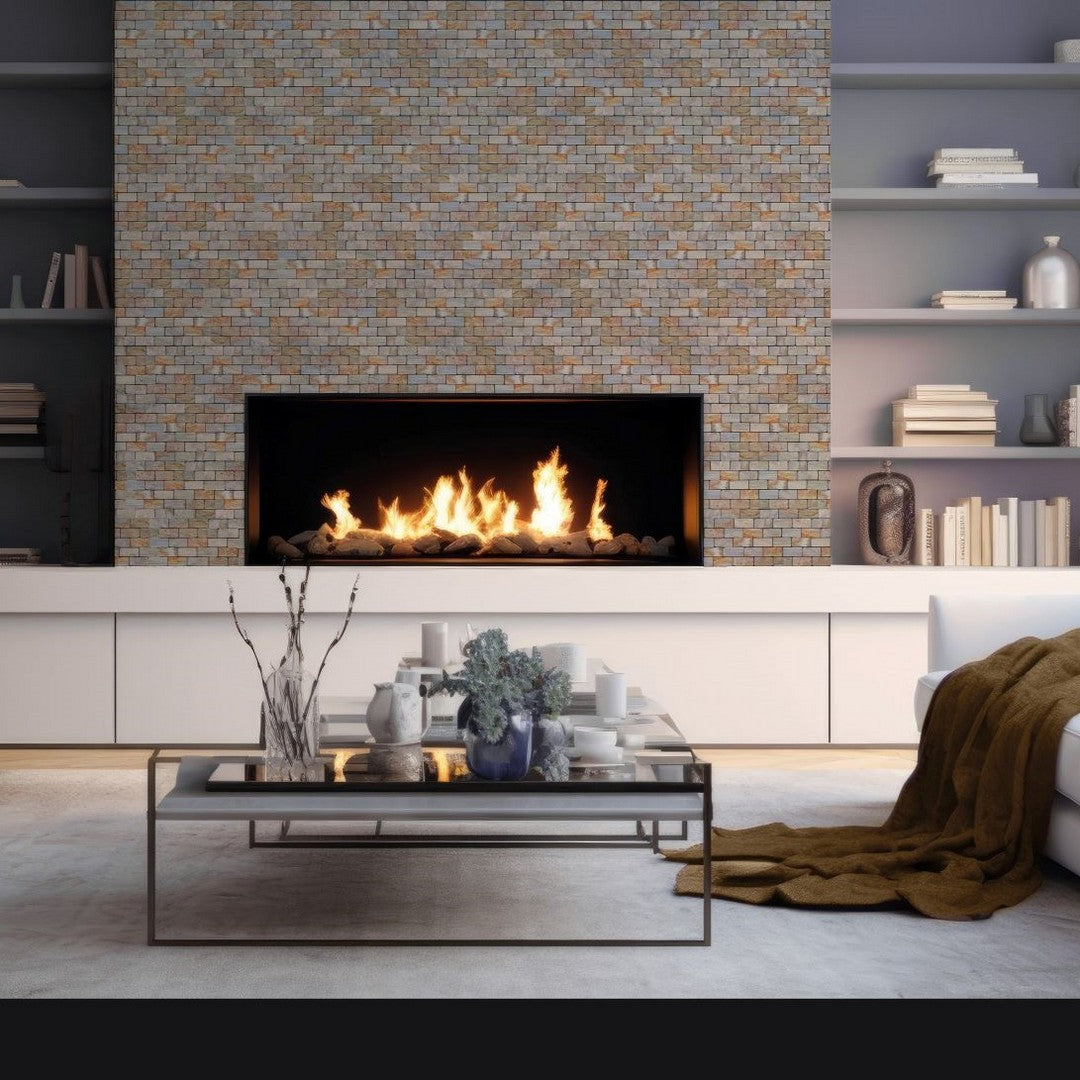 Bati Orient USA Ancient 12" x 12" Fossil Wood Stone 2x4" Brick Mosaic offers a classic brick layout crafted from unique Fossil Wood Stone. The $12" \times 12"$ 2x4" brick mosaic provides a textured, rustic feel, making it an excellent durable wall tile or a subtle yet robust floor insert.