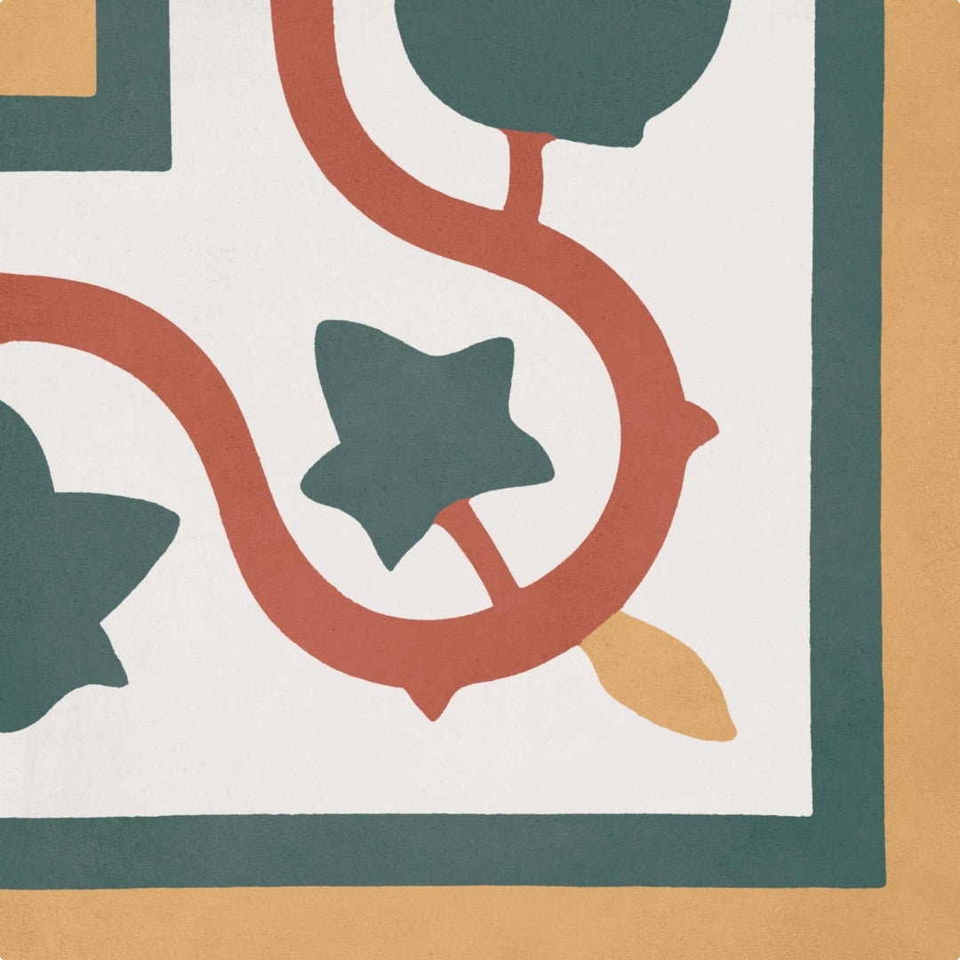 Bati Orient 8" x 8" Matte Corner Leaf Classic Square Cement Tile