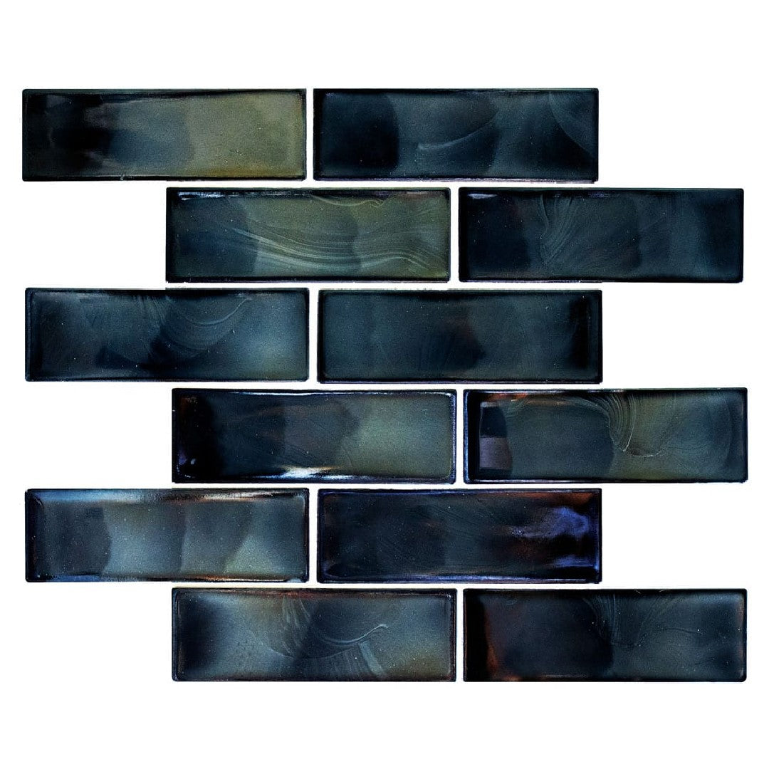 MS International Carbonita Subway 11.75" x 11.75" Brick Glass Mosaic blends sleek glass with a subway brick pattern for a contemporary and vibrant aesthetic. This mosaic tile is perfect for kitchens and bathrooms needing a modern, easy-to-clean surface.