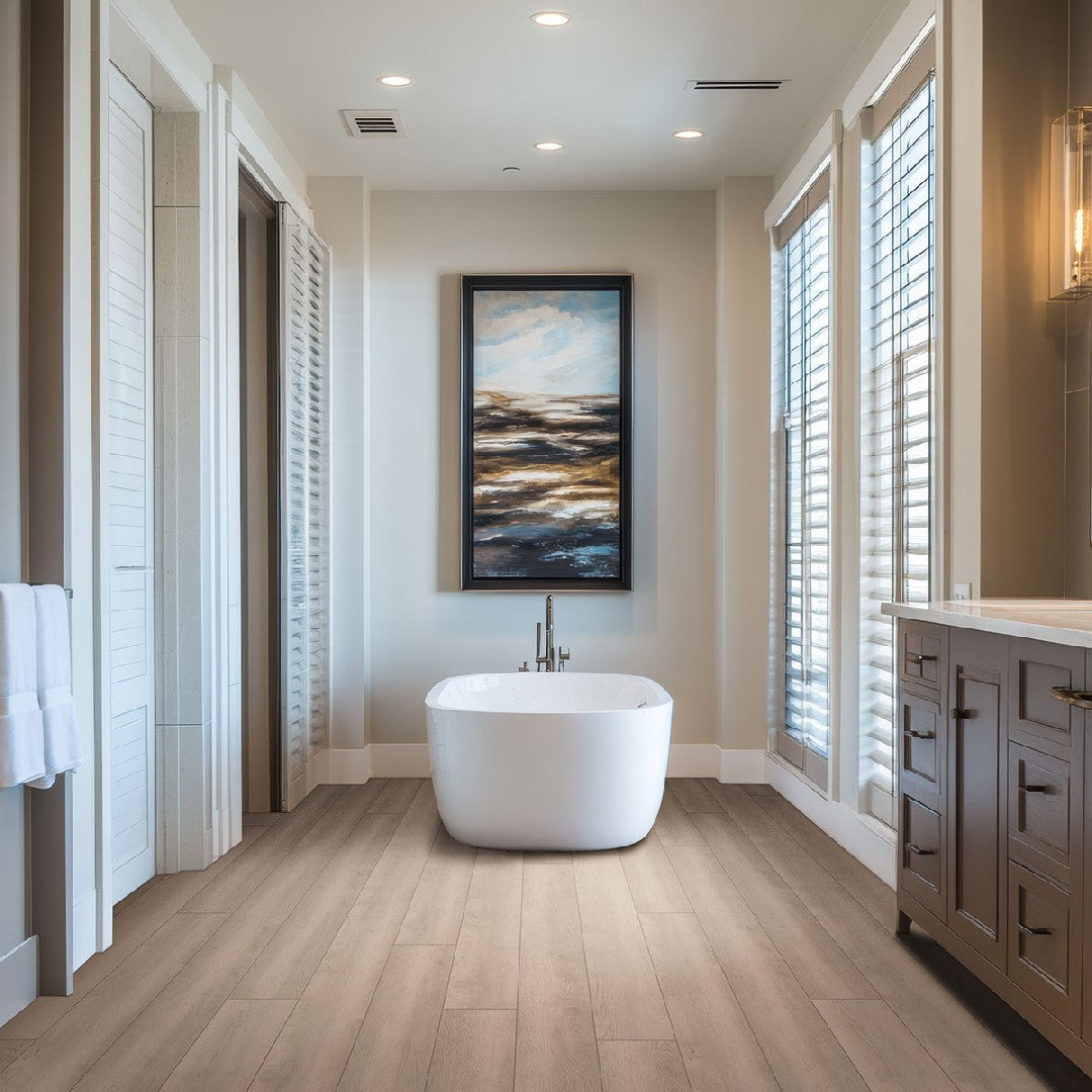 MS International Shorecliffs 9" x 87" Low Gloss Hybrid Rigid Core Plank is a cutting-edge flooring solution combining the best of luxury vinyl and laminate. The low-gloss finish and realistic wood grain texture provide a beautiful, natural wood aesthetic, while the hybrid rigid core construction offers superior stability, durability, and waterproofing. This extra-long plank is perfect for creating a seamless, high-end look throughout your home, even in moisture-prone areas.