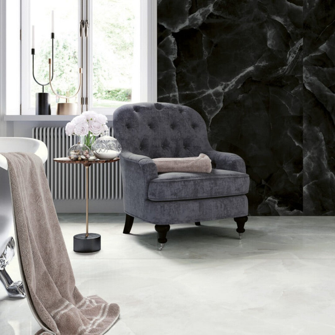 Keystone 24" x 48" Onyx Blue Polished Porcelain Floor Tile is designed for large-scale applications where the striking blue tones and polished surface can truly shine. This oversized porcelain tile provides a seamless, glossy look that amplifies space, making it an excellent choice for contemporary environments aiming to blend sophistication with durability.