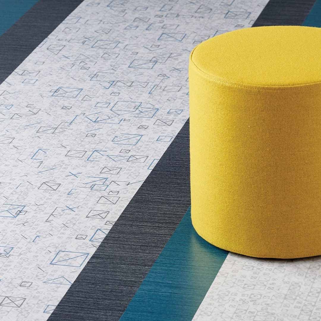 Armstrong Flooring 6 x 36 Theorem Embossed Vinyl Plank features vibrant, abstract visuals with a textured finish, designed for modern commercial spaces like offices and education facilities. This bold collection blends design innovation with heavy-duty performance.