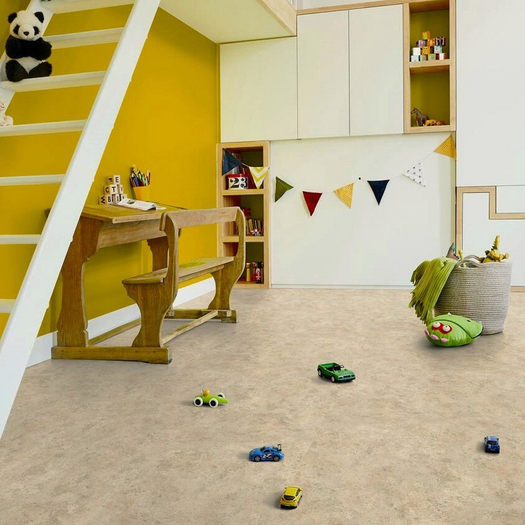 Tarkett iQ Granit SD 6'6x76' Homogeneous Vinyl Sheet is a static-dissipative flooring option ideal for areas that require ESD (electrostatic discharge) control. Its large sheet format minimizes seams, helping reduce the buildup of static electricity. The 2mil wear layer offers reliable resistance to scuffs and stains, making this sheet vinyl a practical and safe choice for high-traffic commercial spaces where sensitive equipment is present.