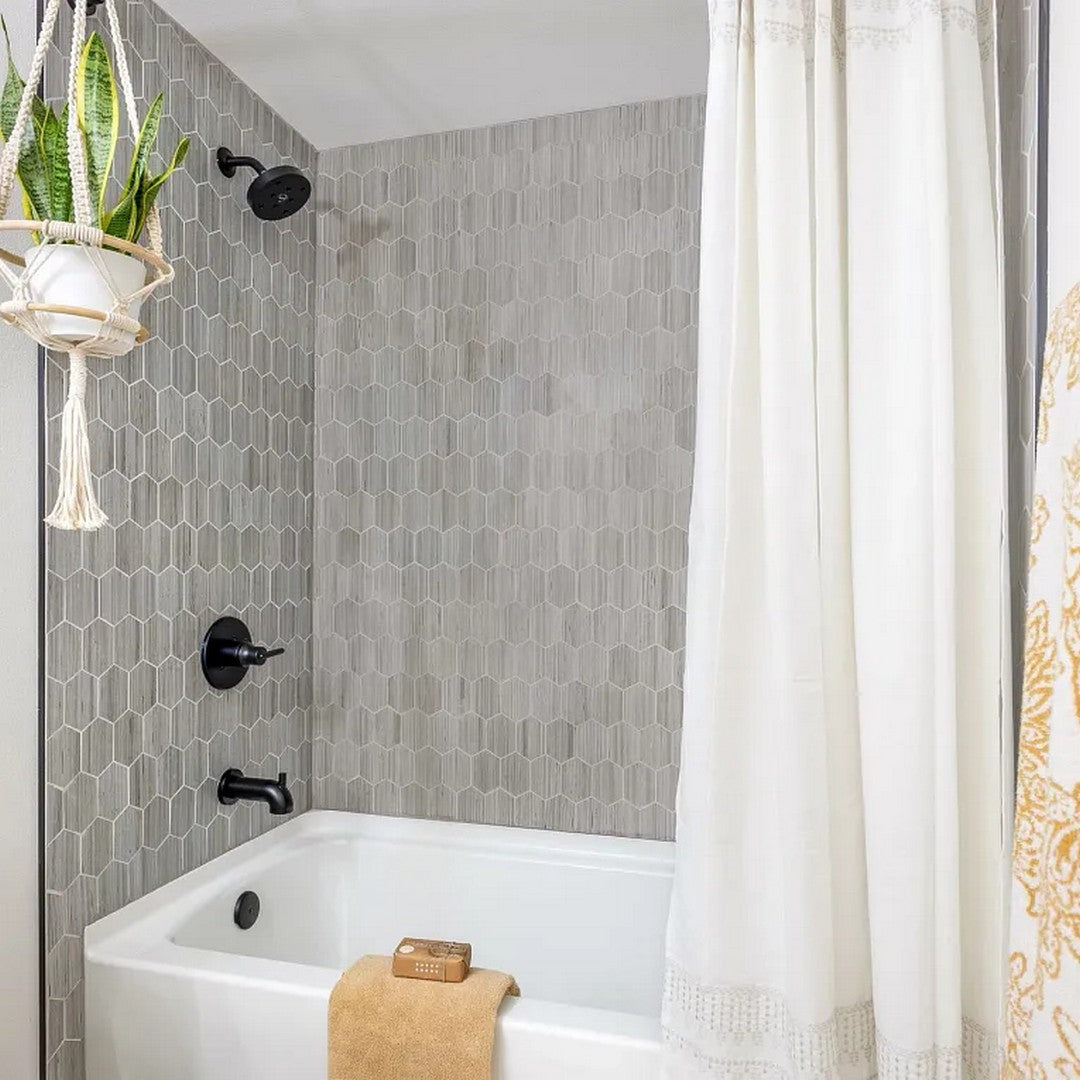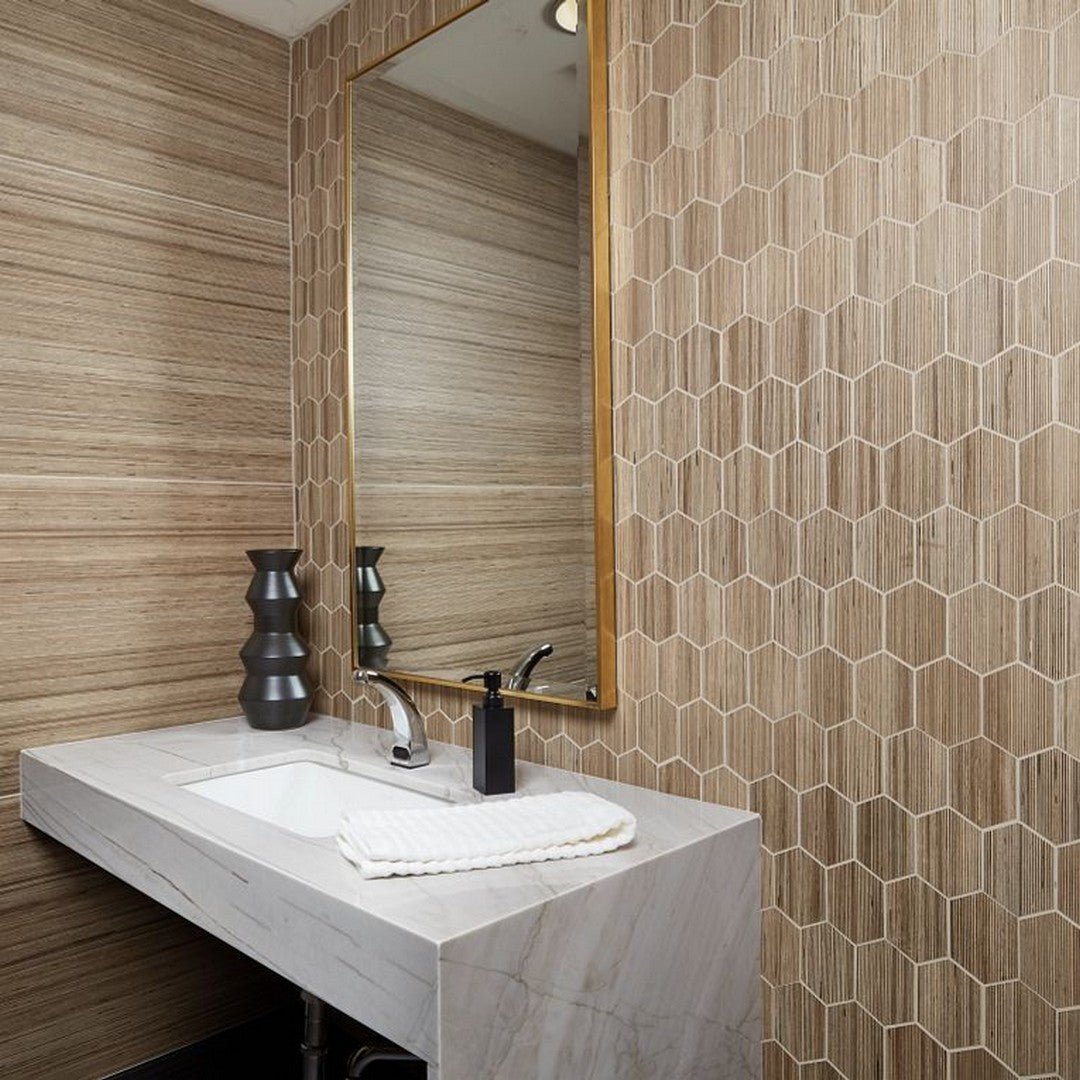 Arizona Tile 11.311.3 Shibusa Porcelain Long Rhomboid Mosaic blends geometric elegance with modern texture. Its elongated rhomboid design creates dynamic, visually rich patterns. Durable porcelain construction offers long-lasting performance. Perfect for feature walls, backsplashes, and contemporary accents.